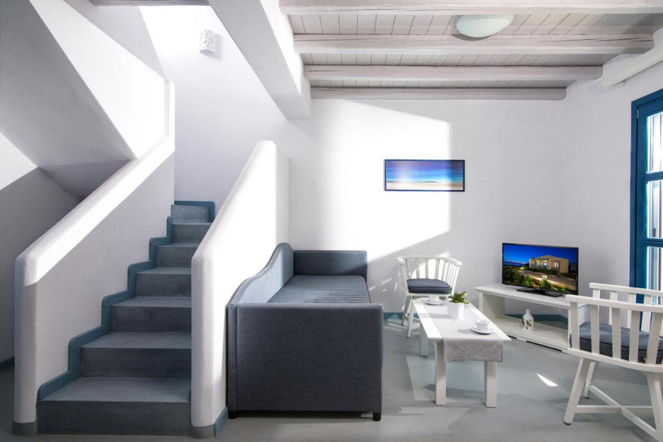 Bedrooms in Evgenia Residences are really comfortable and beautifully decorated with a touch of island style. They are also really bright and have a magnificent view that you can enjoy from the moment you wake up till sunset time.